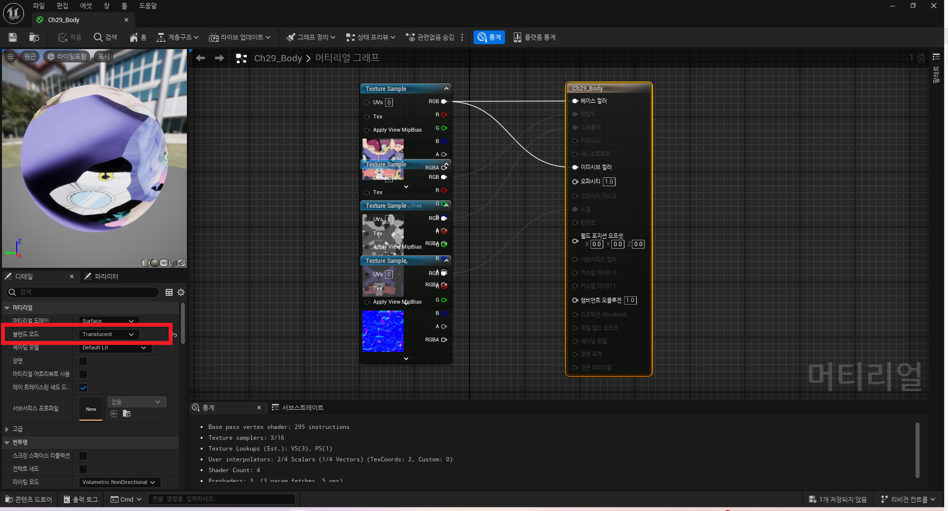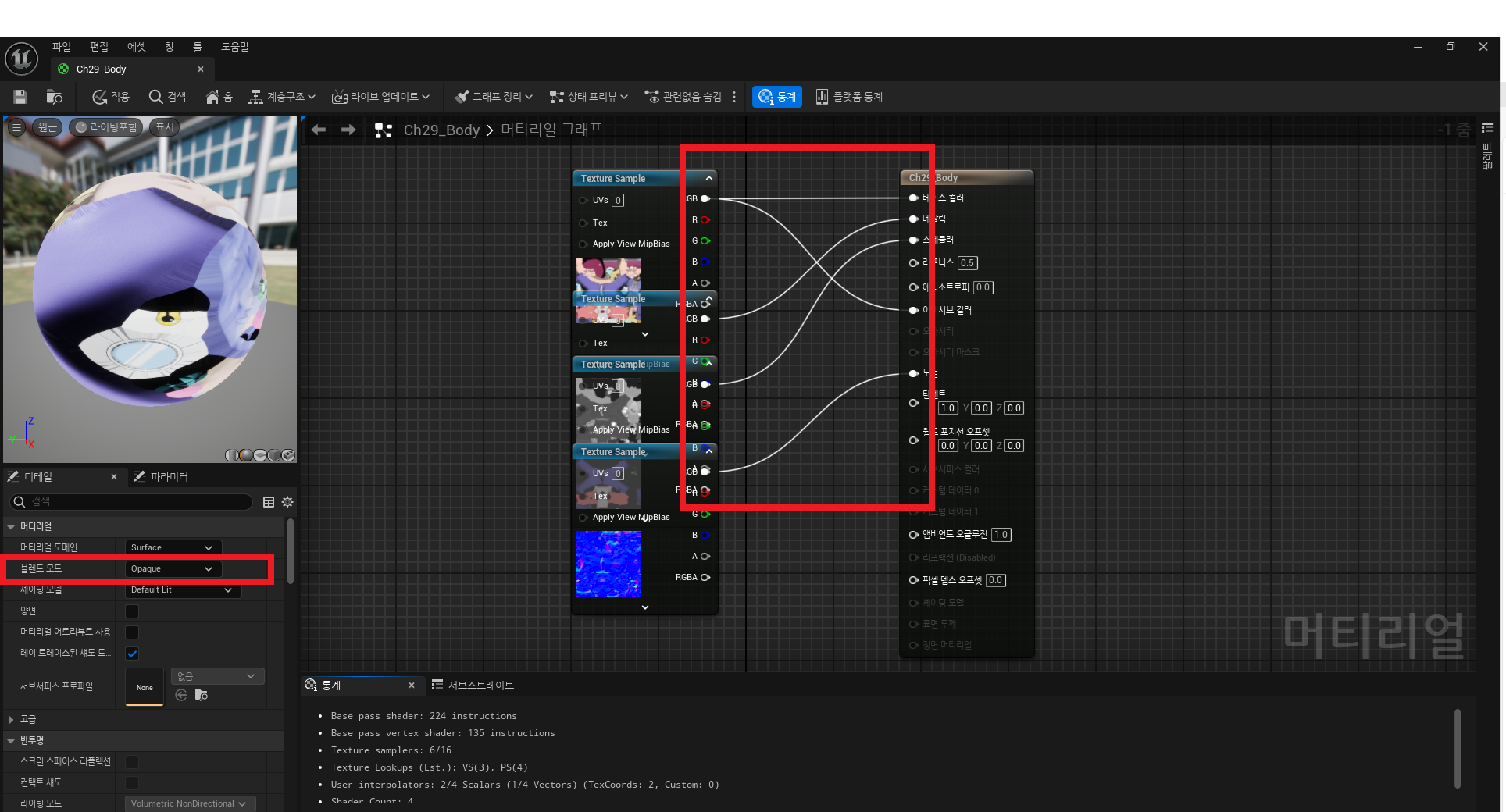 일단 다운받은 캐릭터의 머티리얼로 들어갑니다.