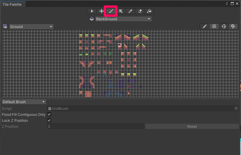 TileSet를 드래그하여 TilePalette의 빈 공간으로 가져왔습니다.