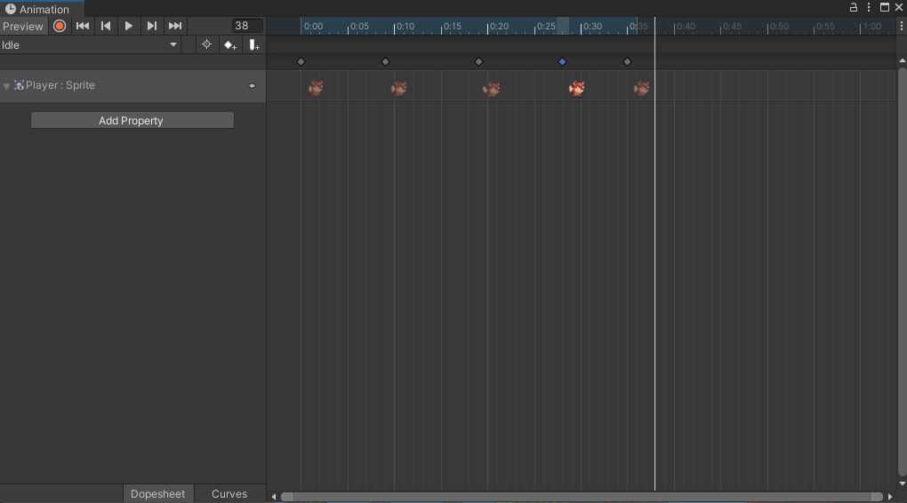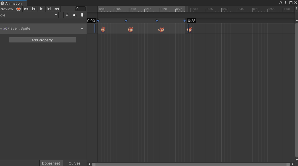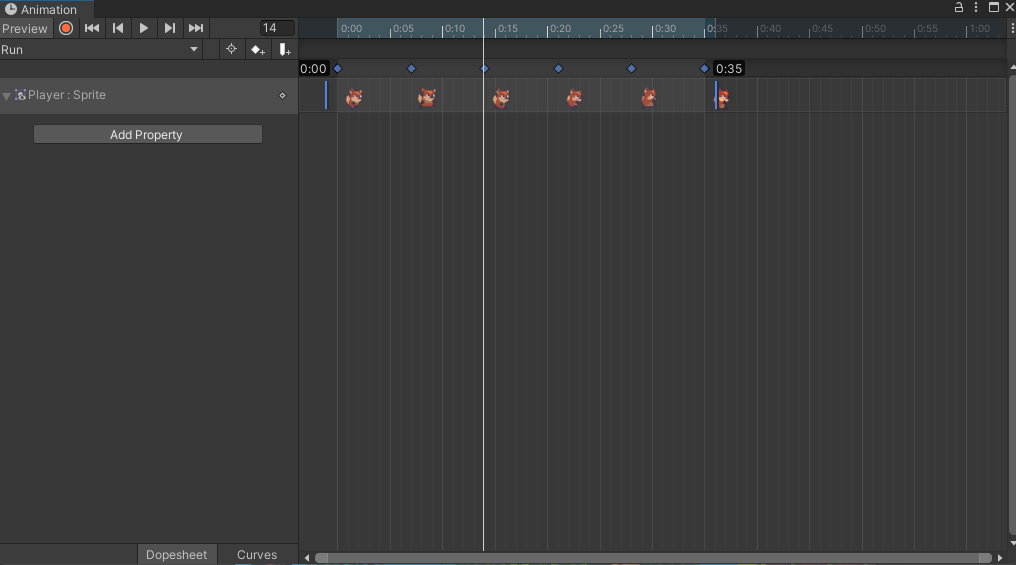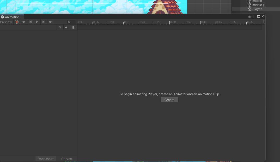 Player를 선택한 상태에서 Ctrl+6을 누르면 애니메이션 창이 뜹니다.