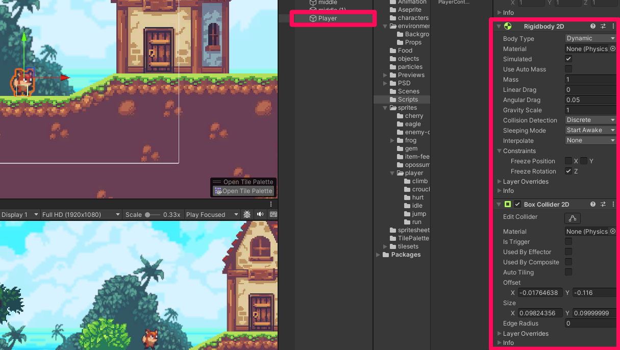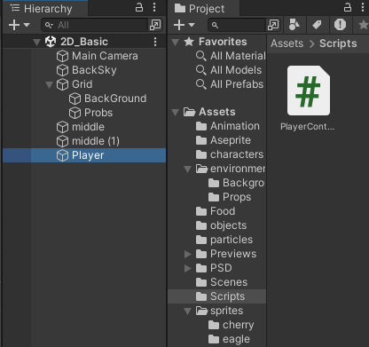 아래 player는 이 Sunny Land 파일에 기본적으로 있는 컨트롤러인데