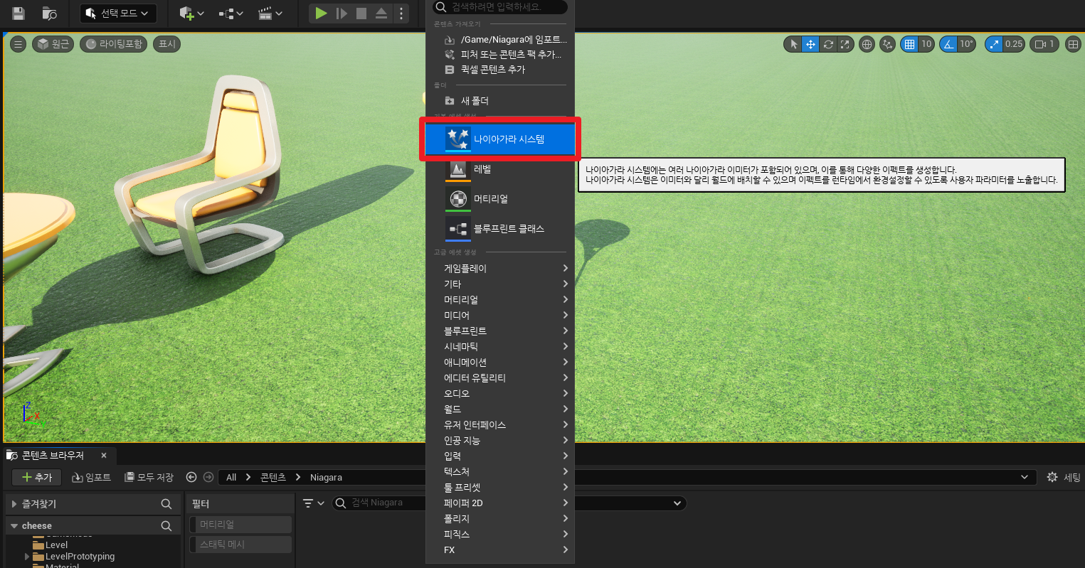 나이아가라 시스템을 이용하여 직접 이펙트를 만들어보겠습니다.