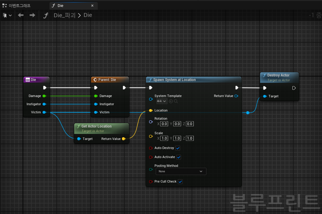이 이펙트를 액터가 파괴됐을 때 나오도록 해보겠습니다.