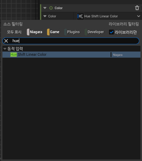 Hue Shift Linear Color로 바꾸면 Hue 값의 변화에 따라 다채로운 색상 변화를 줄 수 있습니다.