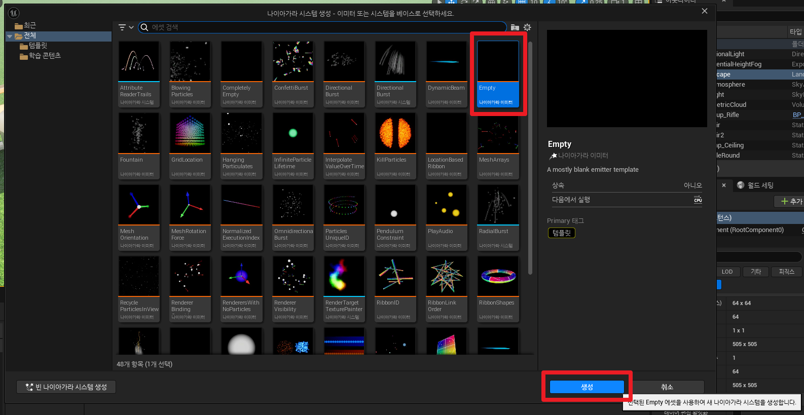System Template는 방금 만든 폭죽으로 선택합니다.