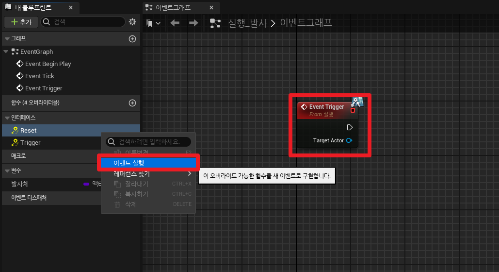 이번에는 오버랩되면 발사하는 컴포넌트를 만들어보겠습니다.