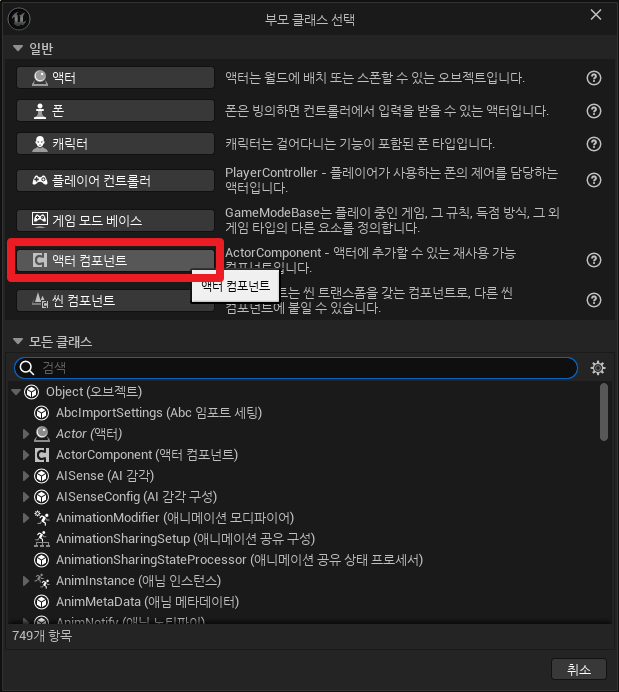 새로운 블루프린트 클래스 액터 컴포넌트를 만듭니다.