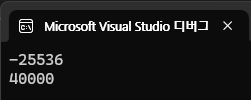 부호 비트 없이 2바이트(16비트) 2¹⁶ = 65,536개의 숫자가 가능합니다.