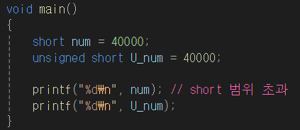 기본적으로 int가 생략되어 unsigned short로 사용합니다.