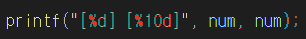 %10d와 같이 사용하면 출력 칸 수를 조절할 수 있습니다.