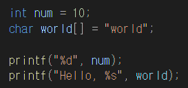 문자열을 출력할 수 있으며, 큰 따옴표(" ")로 감싼 문자열이나 문자열이 저장된 변수(메모리 시작 주소)를 넣습니다.
