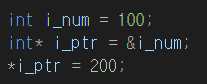 위의 코드에서 *i_ptr = 200; 은 i_num의 값을 200으로 변경합니다.
