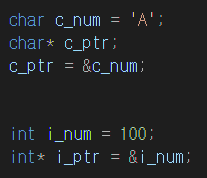 c_ptr = &c_num; 처럼 포인터 변수를 선언 후에 정의할 수도 있고,