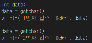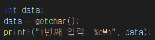 알파벳이나 숫자와 같은 대부분의 입력 문자는 1바이트 크기이므로, 반환값을 char 변수로도 받을 수 있습니다.