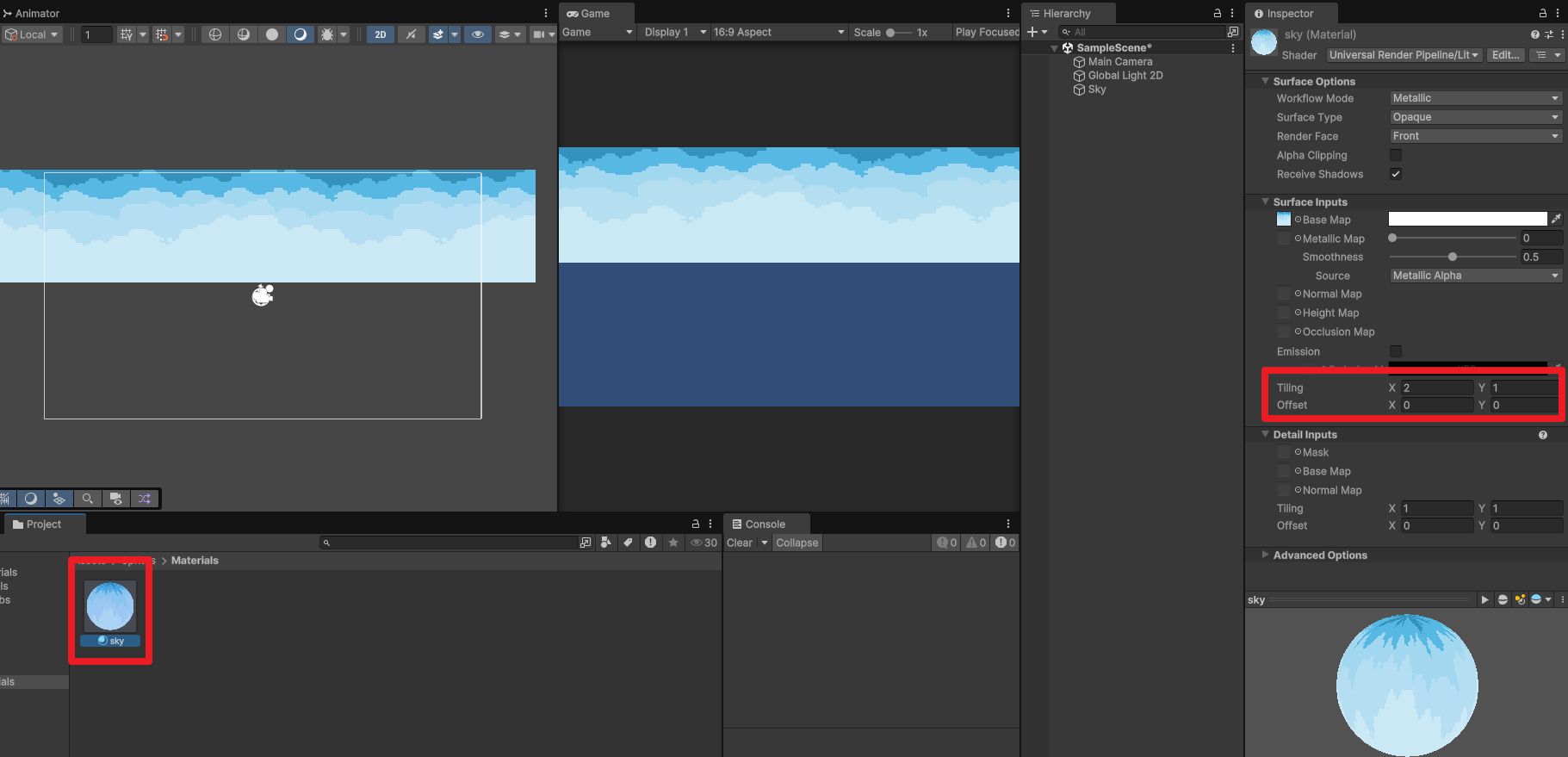 Tiling의 X와 Y 값을 조정해서 이미지가 늘어나지 않고 적절하게 반복되도록 한다.