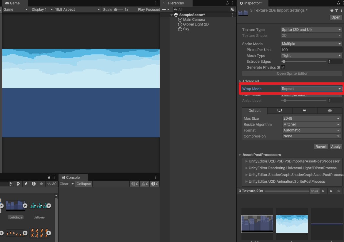 배경은 Wrap Mode를 Repeat로 해준다.