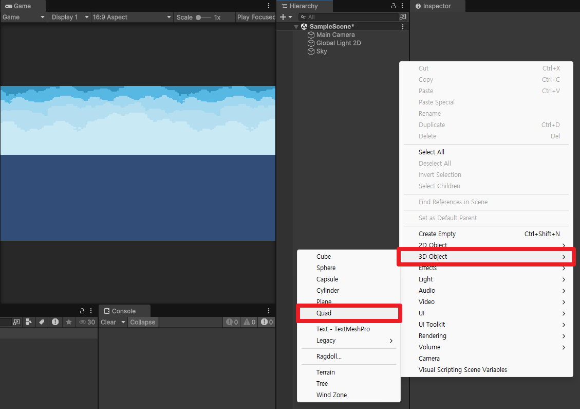 이 Quad에 머티리얼을 적용하여 배경을 만들어볼 것이다.