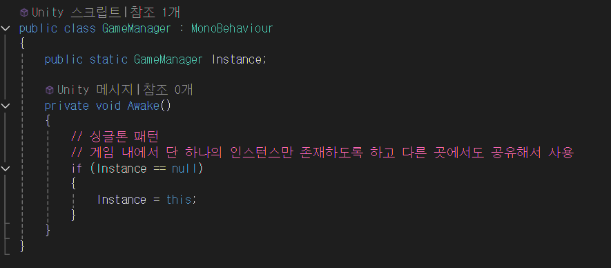 Awake 메서드에 싱글톤 패턴을 사용한다.