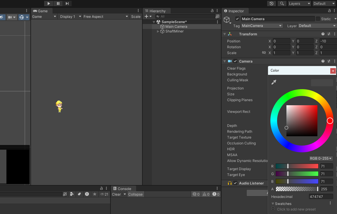 Main Camera의 배경색을 어두운 그레이로 바꿨다.