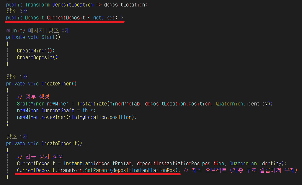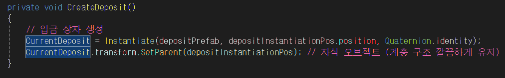 생성된 입금 상자를 CurrentDeposit 프로퍼티에 저장하면 다른 곳에서 쉽게 접근할 수 있다.