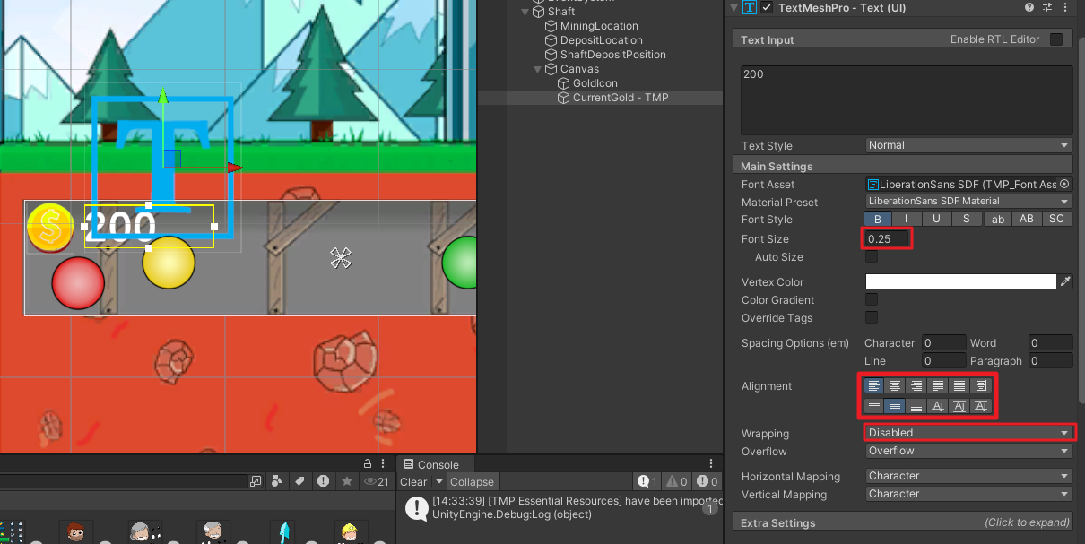TextMeshPro를 만들어서 크기를 1로 줄인다.