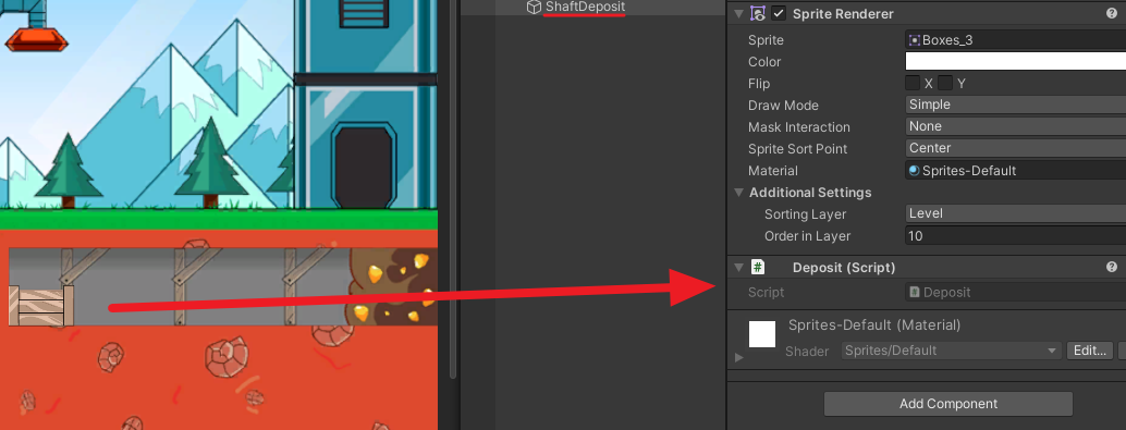 Deposit 스크립트를 추가하고 프리팹으로 만든다.