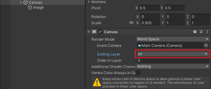 Canvas의 Sorting Layers를 UI로 지정한다.