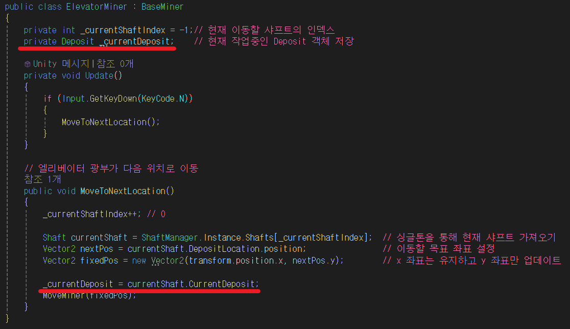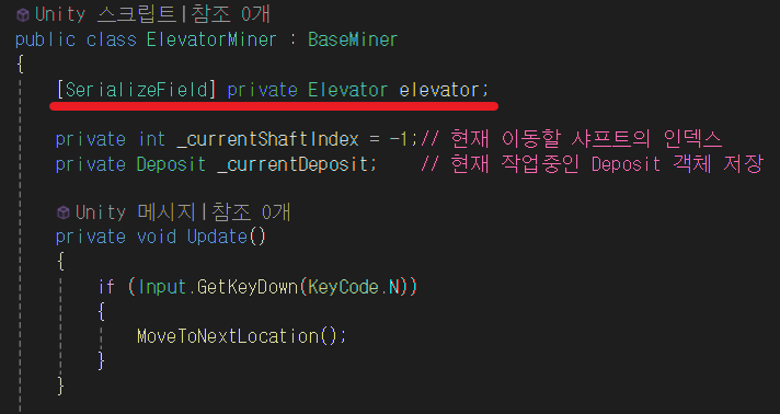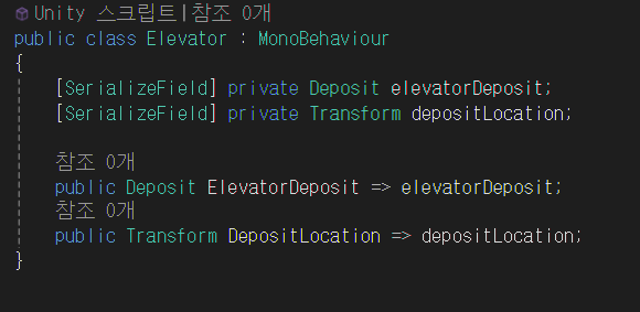 ElevatorMiner 스크립트에 Deposit 클래스 변수를 선언한다.
