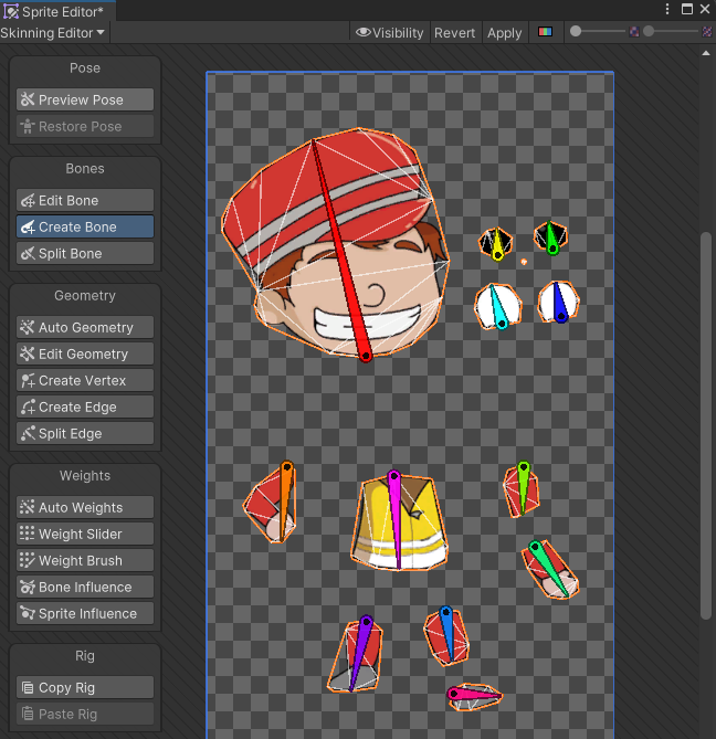Skinning Editor에서 Create Bone으로 뼈를 만든다.