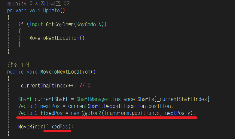 가져온 위치값을 저장하여 MoveMiner 함수로 전달한다.