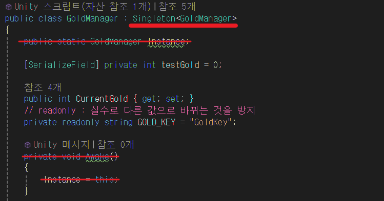 이제 제네릭 싱글톤을 만들었으니 스크립트로 가서 교체한다.