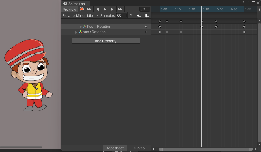 Animation을 만들어서 오른팔과 오른발의 회전값을 조정했다.