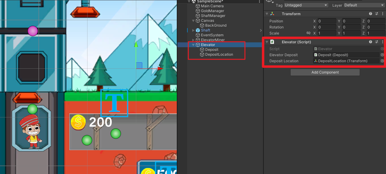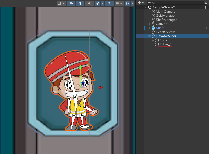 엘리베이터 스프라이트를 씬에 배치하고 ElevatorMiner의 자식으로 넣는다.