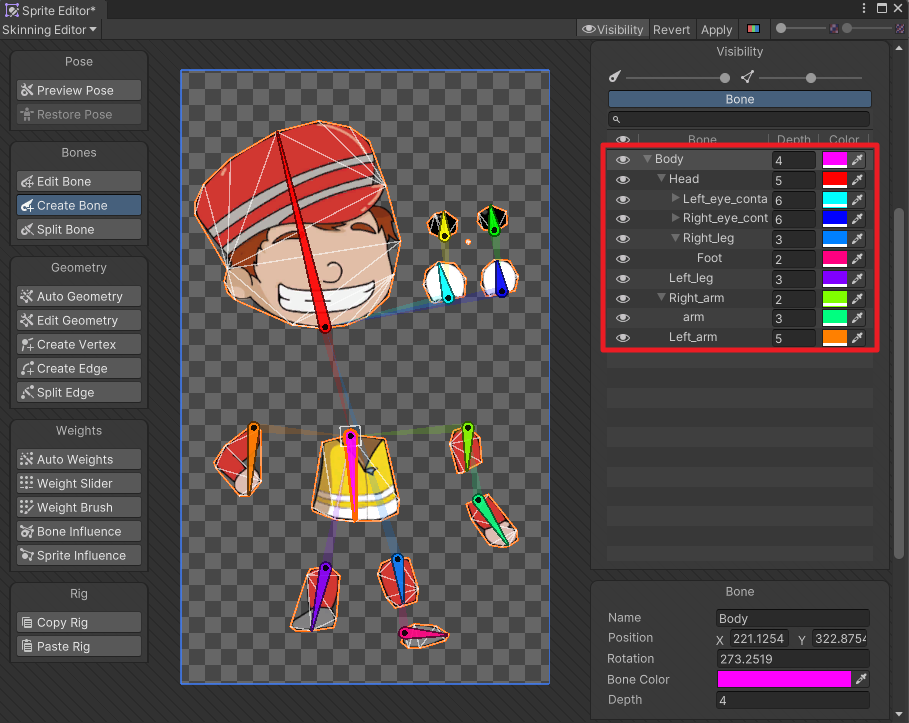 기본적으로 Body 안에 모든 뼈를 넣고 연결되도록 했다.