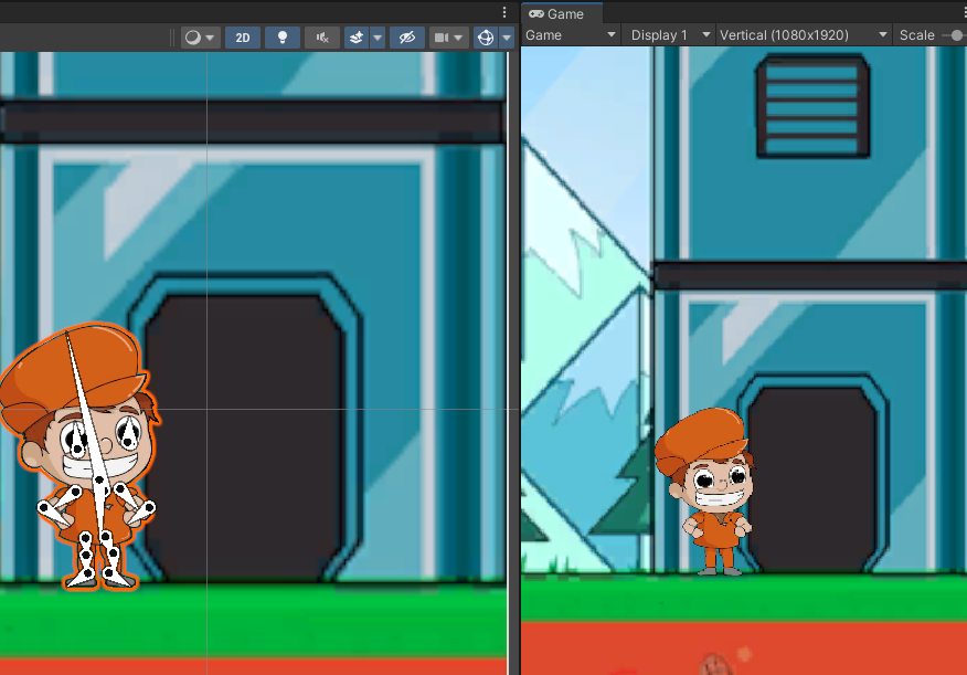 씬에 배치하고 뼈를 이어붙인다.
