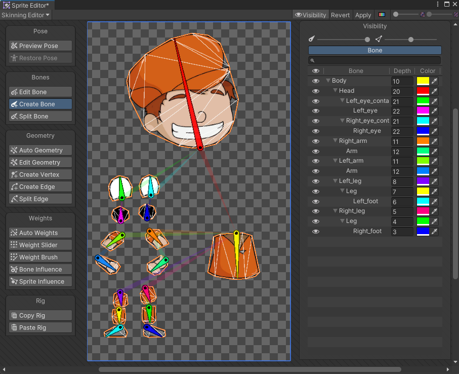 창고 광부도 Skinning Editor에서 Create Bone으로 뼈를 만든다.
