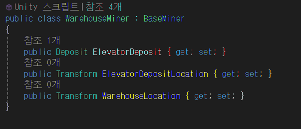 GameObject로 선언했던 부분을 WarehouseMiner로 바꾸고 GetComponent 부분을 없앴다.