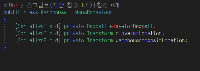 초기화는 Warehouse에서 해주기 위해 스크립트와 위치 모두 프로퍼티로 만든다.