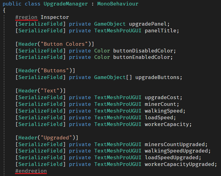 #region #endregion을 추가하여 깔끔하게 닫아준다.