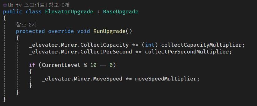 BaseUpgrade 스크립트에 Elevator 클래스 변수를 선언한다.