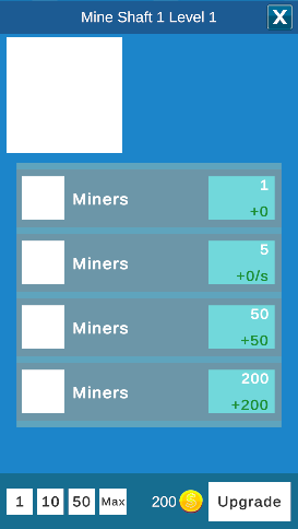 샤프트 광부와 마찬가지로 업그레이드되면 용량과 속도가 올라가고 10레벨이 될 때마다 이동 속도가 올라간다.