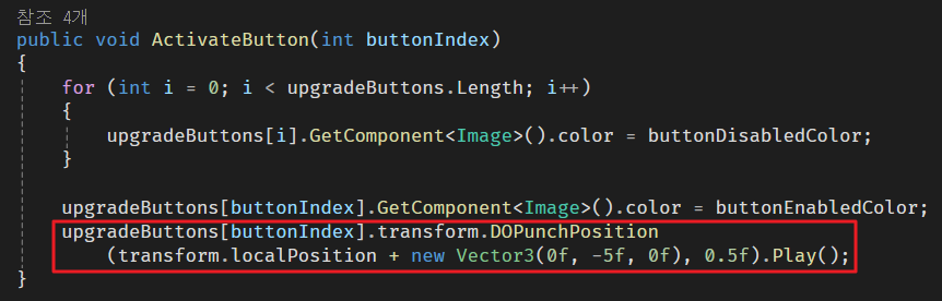 여기에 Dotween의 DoPunchPosition을 추가한다.