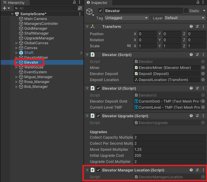 Elevator 오브젝트 안에 ElevatorManagerLocation 스크립트가 있기 때문에 Elevator 오브젝트를 참조로 넣었다.