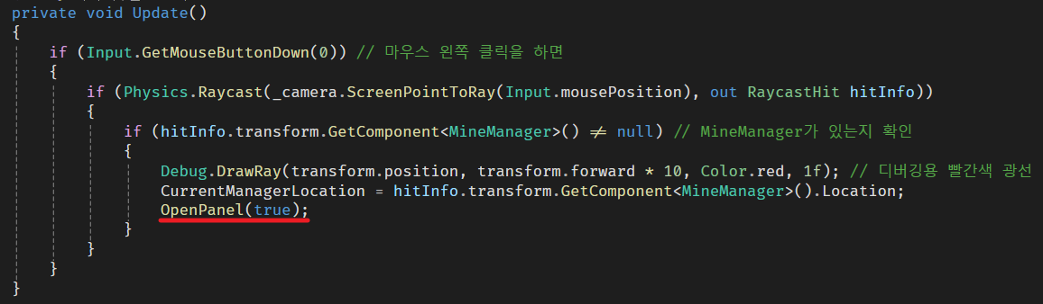 OpenPanel 함수를 만들고 value를 받아서 ManagerPanel을 열거나 닫는다.