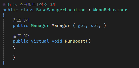 부모 스크립트에는 Manager 클래스 변수와 빈 virtual 함수가 있는 상태다.