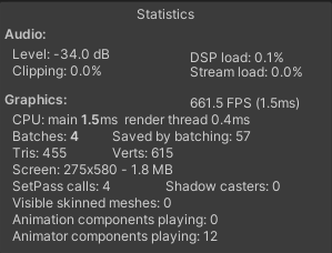 상태를 보면 Batches와 SetPass calls가 7에서 4로 줄었다.