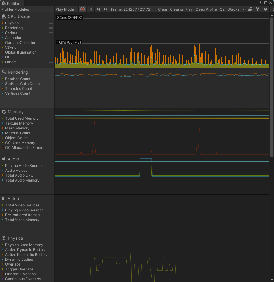 Physics가 과도하게 CPU를 사용중인걸 볼 수 있다.