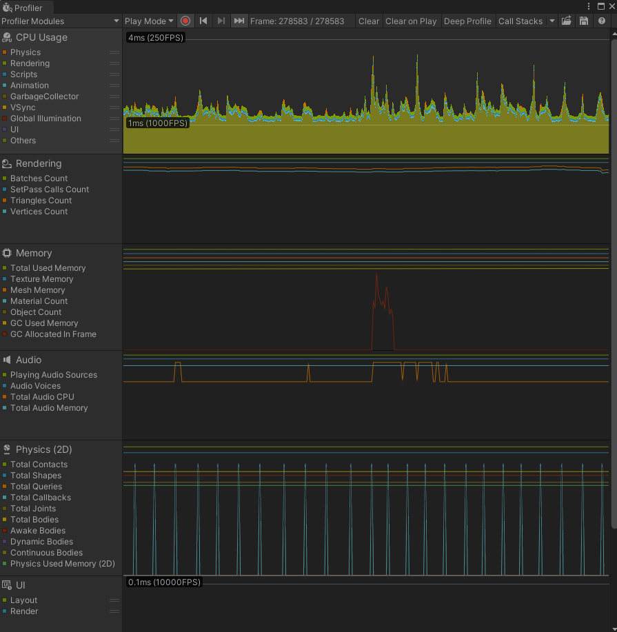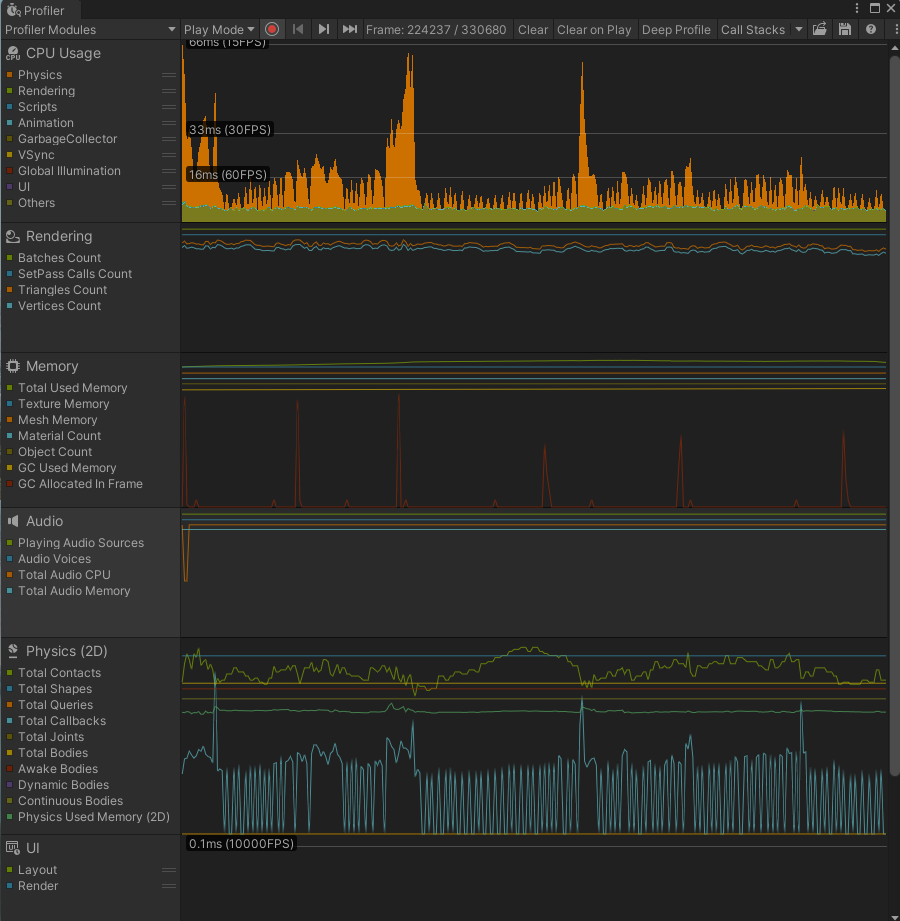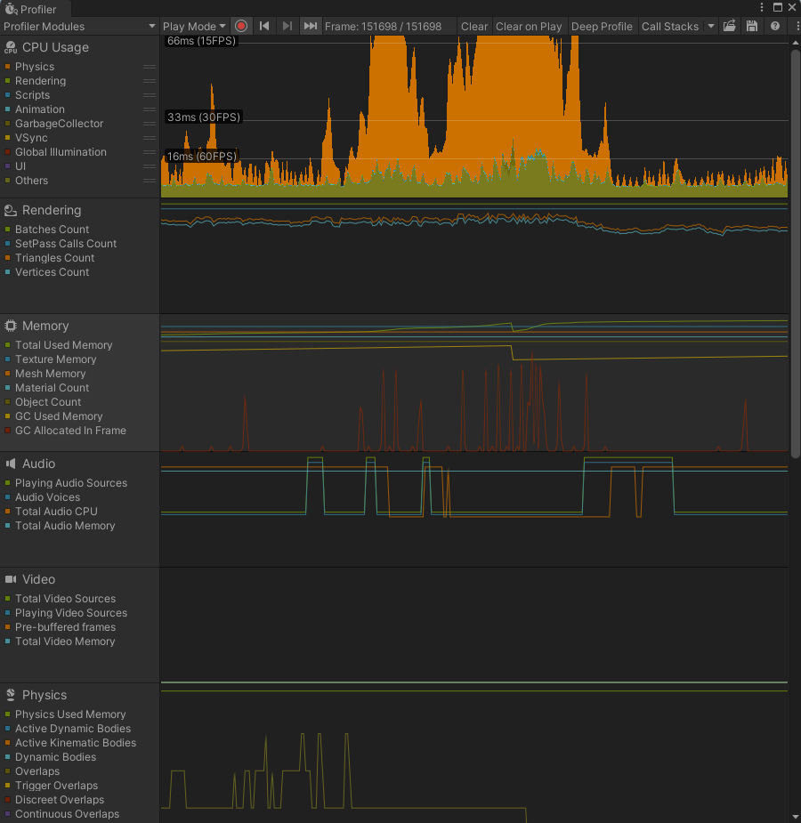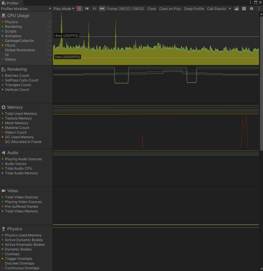 Physics가 과도하게 CPU를 사용중인걸 볼 수 있다.