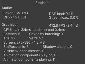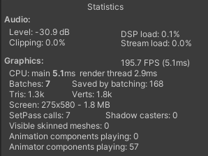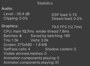 상태를 보면 Batches와 SetPass calls가 7에서 4로 줄었다.